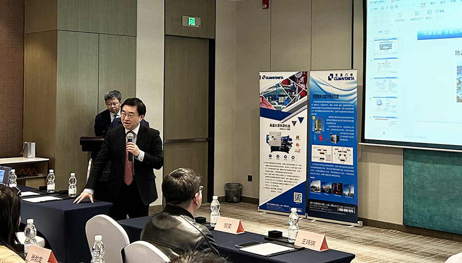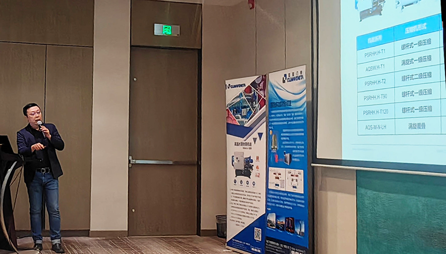 最后,克萊門特華北大區(qū)技術(shù)支持汪鵬先生介紹了克萊門特高溫工業(yè)熱泵產(chǎn)品,通過對(duì)工業(yè)熱泵的需求背景和市場(chǎng)潛力分析以及克萊門特高溫工業(yè)熱泵的特點(diǎn),總結(jié)了克萊門特高溫?zé)岜玫哪繕?biāo)市場(chǎng),并講解了克萊門特高溫?zé)岜美糜酂嵩谄囍圃焱垦b工藝以及為轉(zhuǎn)輪除濕機(jī)組轉(zhuǎn)輪再生供熱的解決方案。