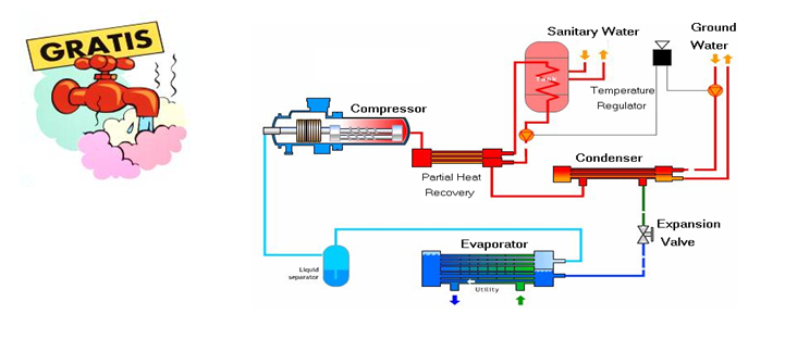通常冷水機組的工質的冷凝,大都單純地采用冷卻水或者空氣冷卻,不言而喻這部分巨大的熱量就白白地送入大氣而浪費了。并且為了帯走這些巨大的熱量而專門設置的冷卻水系統或風冷系統還要消耗大量的電能,這是人們所不希望的,或者說不情愿的。